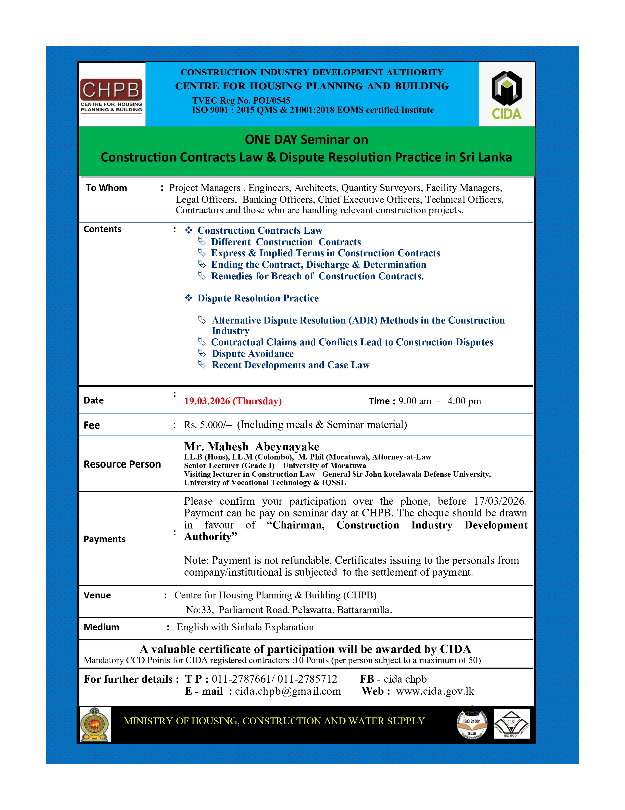 • Construction Industry Development Authority