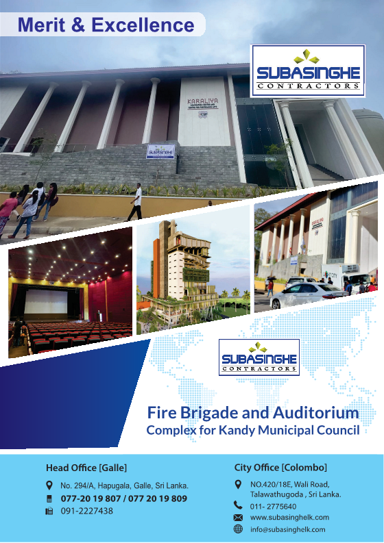 | Merit Award 2024-2025 | Category II | Non Residential Building | Subasinghe Contractors (Pvt) Ltd | Construction of Auditorium,Fire Brigade and Other Utility Building Complex for Kandy Municipal Council Values in between Rs 100 million & 250 million |